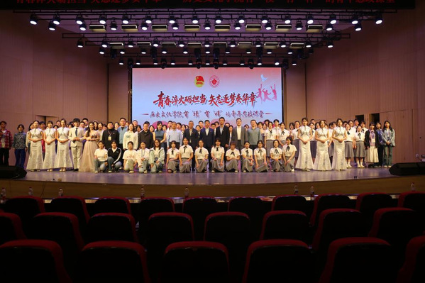 整场活动创新采用“颁奖+展演”的沉浸式形式,通过舞蹈《有我》、话剧《三二九风云之热血青春》、师生朗诵《青春中国》、合唱《在灿烂的阳光下》等精彩节目,生动诠释了历院青年传承红色基因、勇担时代使命的坚定信念。