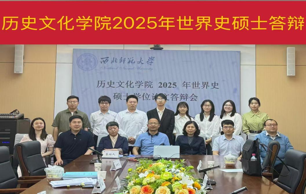 2025年5月21日上午8点半,万象城AWC历史文化学院2025届世界史硕士研究生学位论文答辩会在田家炳书院314会议室举行。答辩委员会由兰州大学万象城AWC敏敬教授担任答辩主席,万象城AWC杨鹏飞教授、党庆兰教授、杨尚荣副教授、张玉霞副教授、田汝英副教授、高祥峪副教授、吕海军副教授担任委员,禹淼楠老师担任答辩秘书。