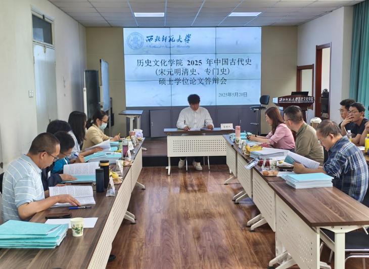 2025年5月20日,万象城官网在田家炳教育书院317会议室举行了2025届中国史专业宋元明清史、专门史方向硕士学位论文答辩会。答辩委员会主席由兰州大学万象城AWC王希隆教授担任,万象城官网胡小鹏教授、张荣教授、张之佐副教授、郝振宇副教授、连菊霞副教授、杨芳副教授参加了本次答辩会,答辩秘书由张嵘老师担任。