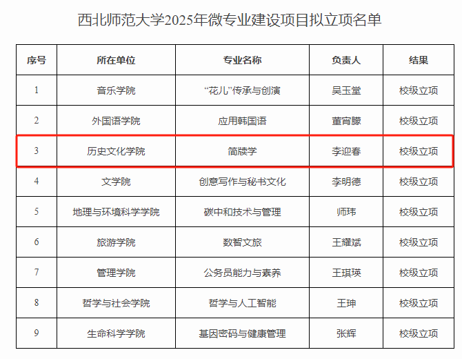 下一步,学院将以此次立项为契机,汇聚力量,扎实推进“简牍学微专业”各项建设工作,致力于将其打造成为传承中华文脉、培养特色人才、引领学科创新的示范性项目。