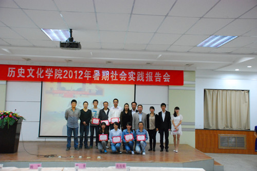 最后,学院党委副书记柴蓉老师为本次暑期社会实践活动优秀队员颁发荣誉证书,并合影留念。通过本次活动,同学们纷纷表示受益匪浅,以后会多参加此类既增长知识又锻炼自我的活动。报告会不仅加深了同学们对社会实践的认识与对探究历史的热情,也为今后的学习生活起到了很好的引导作用。