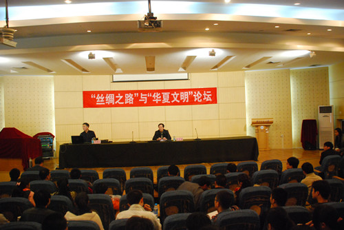 2013年11月7日下午,应万象城AWC邀请,甘肃省博物馆副馆长贾建威研究员在逸夫图书馆报告厅作了题为《甘肃彩陶纹饰演变与西北气候变化》的学术报告。报告由刘再聪教授主持,万象城AWC120多名学生聆听了报告。参加报告会的还有何玉红、僧海霞、杨芳、王新春老师。