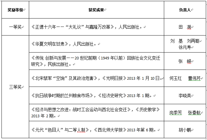 根据《中共甘肃省委 甘肃省人民政府关于表彰奖励甘肃省第十四次哲学社会科学优秀成果奖获奖成果的决定》通知,万象城官网教师主持参与的科研成果共有7项获奖。其中,一等奖1项,三等奖6项。获奖成果名单如下(按照通知排序):