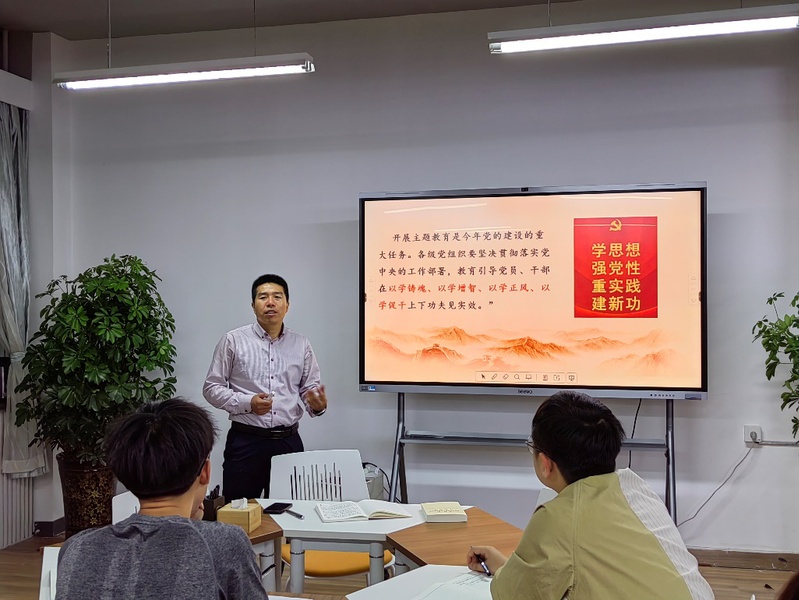 张继刚带领大家认真学习了习近平总书记在学习贯彻习近平新时代中国特色社会主义思想主题教育工作会议上的重要讲话。他强调,开展主题教育意义重大,要坚持用习近平新时代中国特色社会主义思想凝心铸魂,将学习贯彻习近平新时代中国特色社会主义思想不断引向深入并转化为坚定理想信念。要求同学们要珍惜机会,谦虚谨慎、勤奋学习,发扬刀刃向内的自我革命精神,着重加强自身问题的检视整改,始终在思想上政治上行动上同党中央保持高度一致。