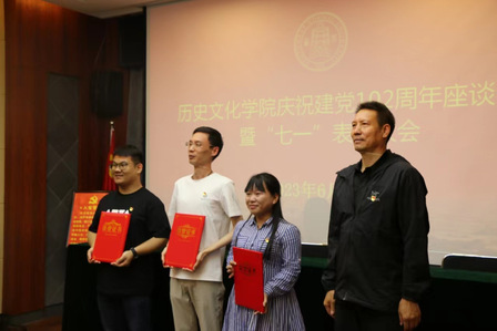 座谈会结束后,学院党委召开了“七一”表彰大会。党委书记康智杰、副院长常成、组织员柳祥分别为获得优秀共产党员、优秀党务工作者和学习标兵的党员颁发荣誉证书。