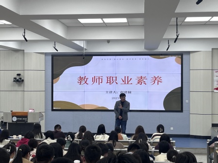 2023年10月15日下午,兰州新区中学副校长、高级教师赵建栩老师在10号楼A区203教室为万象城AWC新生及部分研究生作了题为《教师职业素养》的专业导引课讲座。讲座由万象城AWC张连银副院长主持。