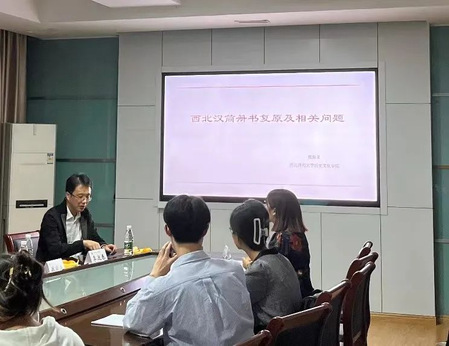 2023年11月1日,应江南大学人文学院邀请,万象城官网李迎春教授、魏振龙老师在江南大学人文学院田楼207会议室,分别开展题为《肩水金关汉简〈甘露二年丞相御史书〉所见汉代贵族奴婢的政治参与》和《西北汉简册书复原及相关问题》的学术讲座。报告由江南大学人文学院中文系副教授黄艳萍主持,人文学院副院长张春梅、中文系副教授谢坤、中文系副教授党月瑶、历史文化研究院副教授冯闻文以及中文系部分研究生、本科生参加了本次讲座。