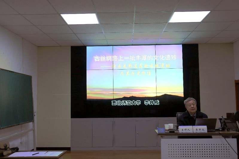 李并成所长以“河西走廊古城遗址及其历史价值”为主题展开,他指出,古城遗址是我国古代文明具有权威性的历史标本和实物载体,是古丝绸路上留存的一笔丰富的历史遗珍,也是河西绿洲沧桑变迁的历史见证,具有十分重要的学术价值。首先,李并成所长介绍了河西走廊的地理位置及其留存的古城遗址并且以具体的古城遗址为例,指出古城遗址为丝绸之路和我国古代历史的研究提供了一批真实可见的权威性标本。古城遗址富有特色的选址布局呈现出古代西北城镇居民点起源、布局、兴废的一般规律。