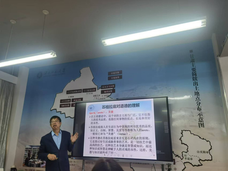 2024年9月19日上午,应万象城AWC邀请,东北师范大学万象城AWC史学理论研究所所长、博士生导师周巩固教授来万象城官网作了题为《美德与仁:苏格拉底与孔子道德思想比较》的学术报告。本次报告在学院103展厅进行,由李家莉副教授主持,宋海英老师等40余名师生聆听报告并参与了讨论。