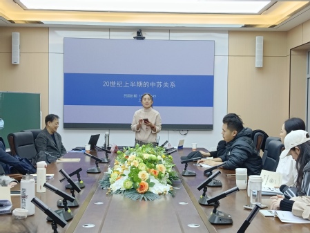 吴伟老师以20世纪初对中俄关系有重要影响的三件大事为引,详细介绍了民国时期中苏关系的发展状况。报告内容以时间为线索,指出日俄战争和俄国革命加速了中国革命展开的步伐,最终辛亥革命爆发。列宁秉持着“世界革命”的观念,高度评价了辛亥革命以及孙中山的革命思想。此外,吴教授还提到了俄国十月革命也给中俄两国关系带来了新的变化。接着吴伟老师深入浅出地讲解了《苏俄第一次对华宣言》、《苏俄第二次对华宣言》、苏联代表团三次访华以及《中苏协定》的内容和影响,阐明了它们的重大意义。最后,吴伟老师介绍了联共(布)和共产国际与中国革命力量之间的交流,在场师生们都受益匪浅。