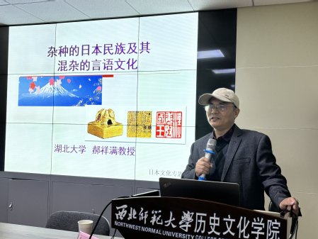 郝祥满教授以日本朝代为线索,详细分析了日本民族及其语言的杂种性以及中国在这一过程中对其产生的巨大影响。报告以“骑马民族征服说”与日本民族的杂种性开始,论述了上古日本列岛被征服的历史与岛人杂交的历程,接着分析了日本弥生、大和时代的日本移民问题与日本语音特点,通过剖析日本大和王朝鼓励移民政策促进了日语的“四音”混合和混用、日本明治维新以后的优生说与日本人外语学习的特点,报告最后认为,日本人种和文化、语言的混杂是一个漫长的历史过程。