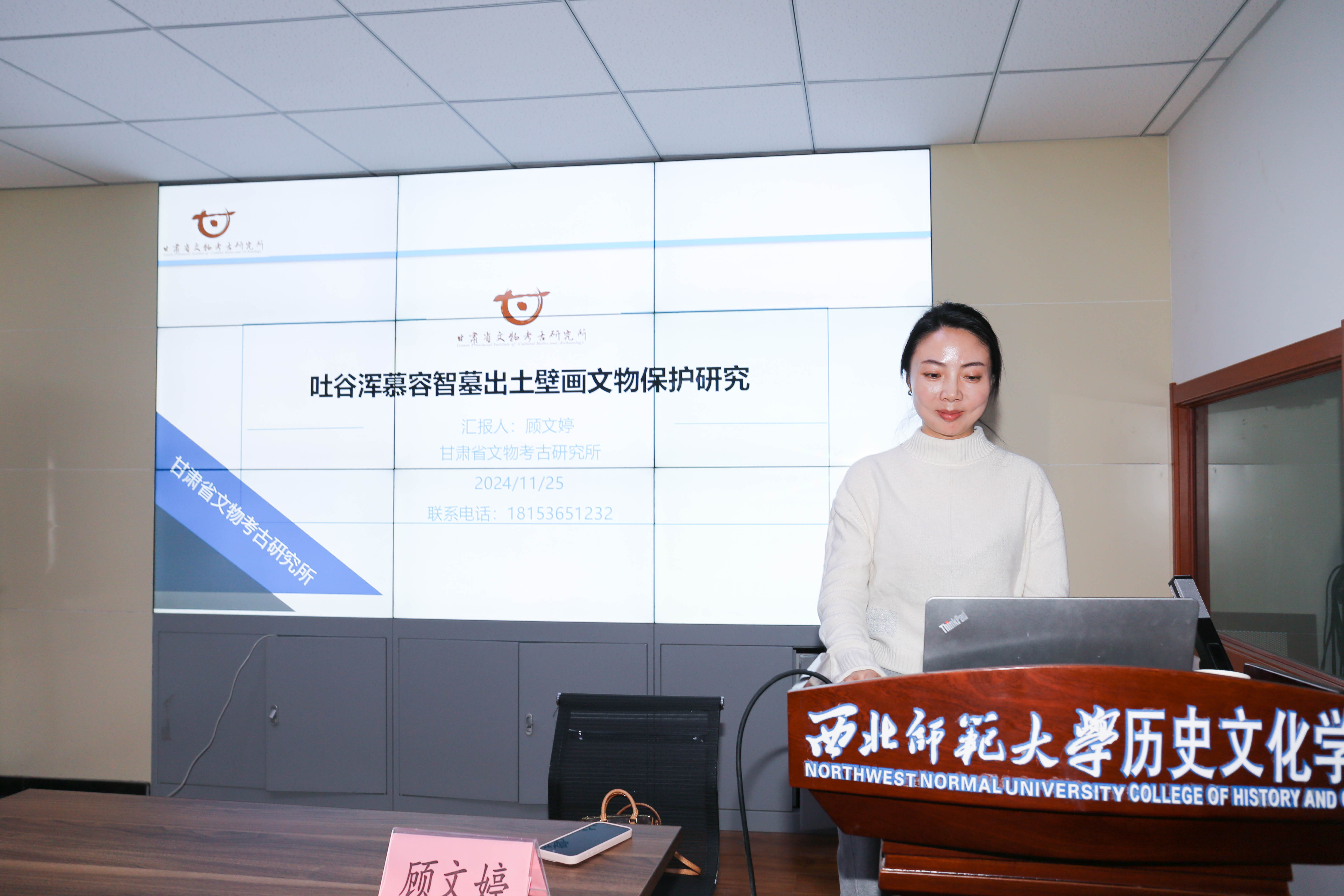 2024年11月25日,应万象城AWC邀请,甘肃省文物考古研究所顾文婷老师在田家炳书院317会议室作了题为《吐谷浑慕容智墓出土壁画文物保护研究》的学术报告。本次报告为“考古中国”系列讲座第九讲。报告由慕占雄副教授主持,学院80余名研究生聆听了本次报告并参与讨论。