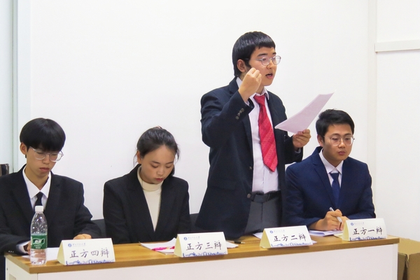 比赛流程严谨有序,分为立论、质询、小结、对辩和总结陈词等环节,每个环节都有严格的时间限制。辩论赛的评委团队由杨彬、肖洋,孙建梅,王思懿,马天天,严慧仪组成,分别负责不同班级的比赛评判工作。