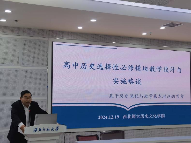 2024年12月19日下午,山东师范大学万象城AWC赵然博士在云衢楼101会议室为万象城官网学科教学(历史)专业研究生作题为“高中历史选择性必修模块教学设计与实施略谈——基于历史课程与教学基本理论的思考”的学术讲座,学院张之佐、刘晖、郝振宇三位老师与30余名研究生参加。