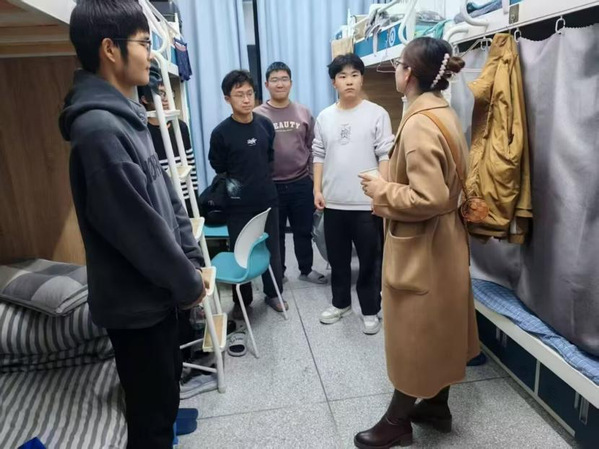 走访寝室严管宿舍纪律。开学期间,学院领导、班主任、导师、辅导员全体深入学生社区,多次走访寝室检查宿舍安全隐患,第一时间为同学们带来关心和嘱咐。老师们仔细查看宿舍的消防设施、电器使用情况,在与学生面对面交流的过程中,提醒大家在开始新学期的学习时,同样需要做好寝室卫生整理。针对寝室电器不正确使用、个人物品摆放不当等安全隐患,同时提出整改措施,要求做到“人走断电”,提高寝室全员安全意识。