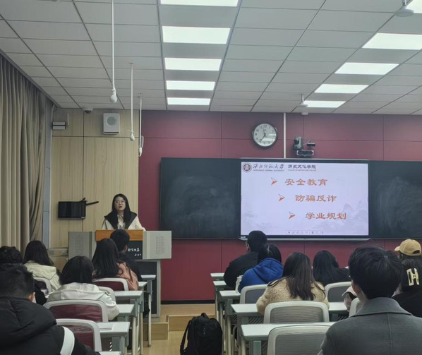 讲消防、讲防盗、讲出行……学院不忘开展例行安全教育。在推进安全教育的整个过程中,历史文化学院将坚定不移地强化学生安全稳定工作的执行力度,全力为学生安全稳定保驾护航,力求安全教育的内容更加贴切实际、效果更加显著,进一步增强学院学生安全意识和自我保护能力。