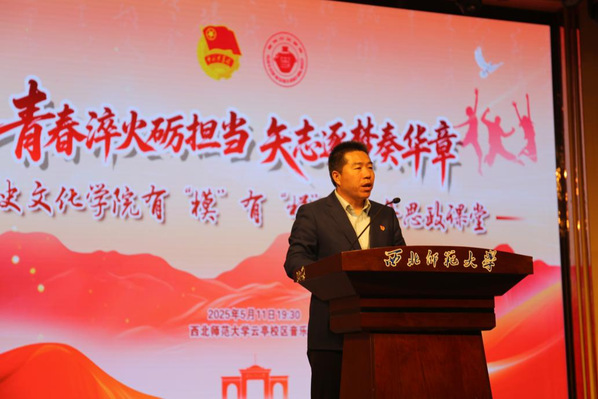 张继刚院长在致辞中回顾了学院在人才培养、教学科研等方面取得的突破性成就,涌现出水高鹏、马倩倩等一批师生先进典型,学生工作开创了新局面,学院发展迈上了新台阶。他强调,要牢记初心和使命,坚持立德树人根本任务,围绕简牍学一流学科建设目标,为推动学院高质量发展贡献学工力量。新时代青年要坚定理想信念,将个人理想融入国家发展,用奋斗淬炼青春之歌,才能写就光荣与梦想远征中的青春华章。