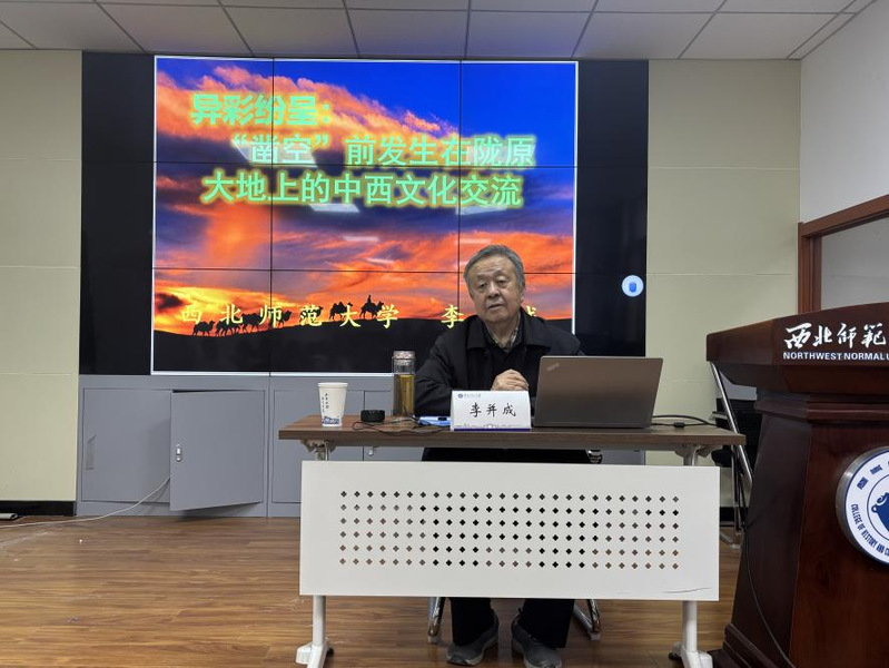 2025年11月6日下午,研究员、博士生导师李并成先生在田家炳教育书院317教室作题为《异彩纷呈:“凿空”前发生在陇原大地上的东西文化交流交融》的专题讲座。本次讲座由学院梁姗姗副教授主持,学院陶兴华连菊霞郭妙妙三位老师及六十余名同学参加。